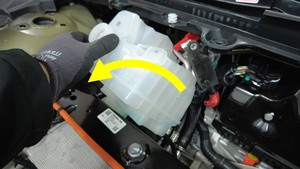 - 从超级歧管上松开冷却液罐,将冷却液罐朝车尾方向移动以将其拆下。