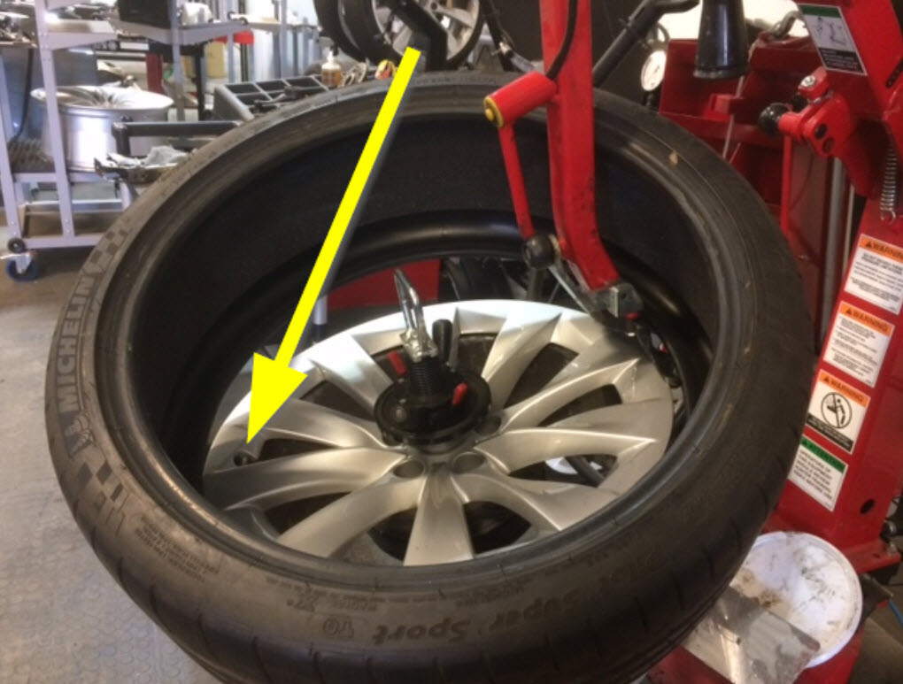 - 将轮毂放到轮胎机上,轮毂前部朝上。