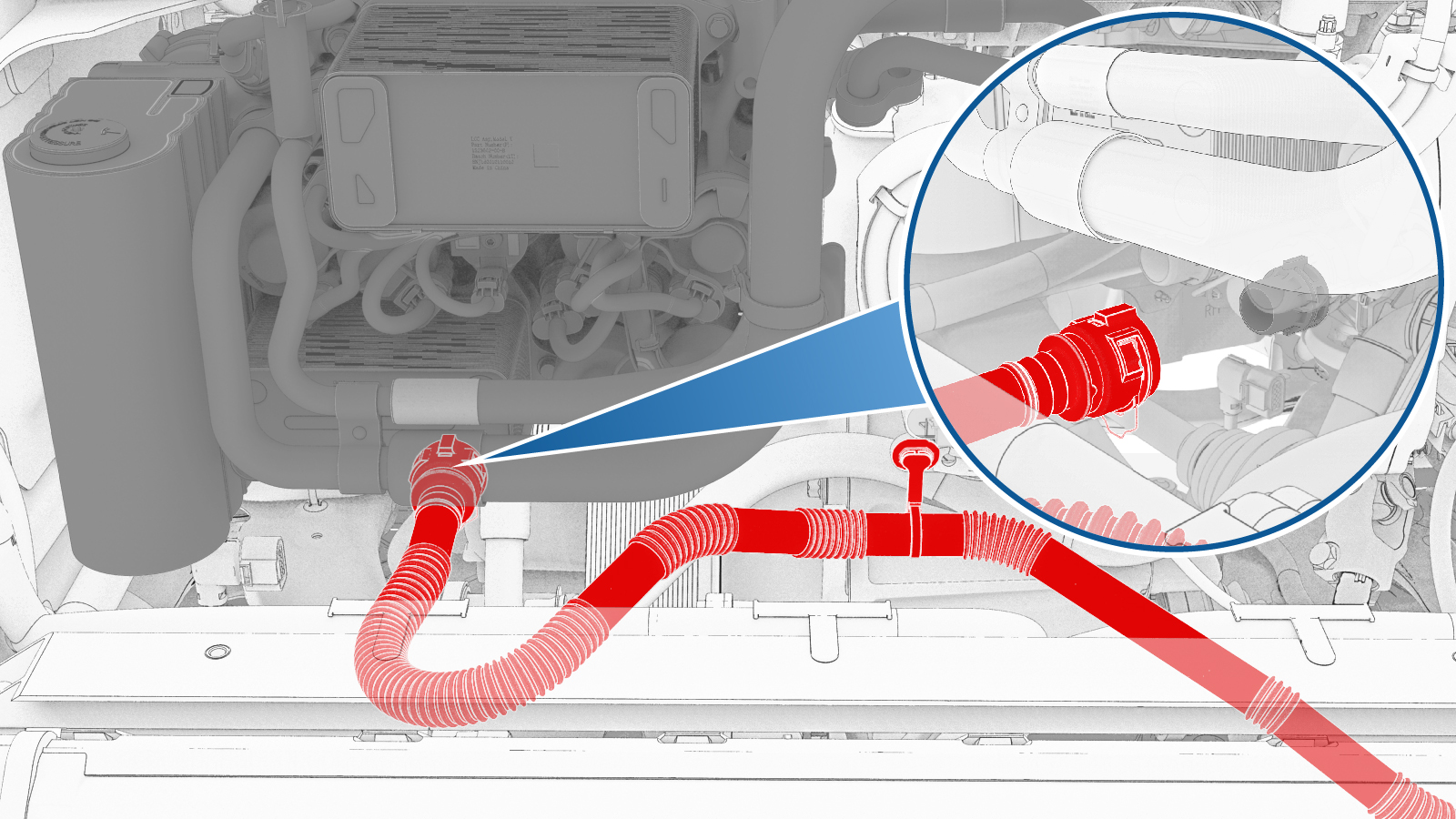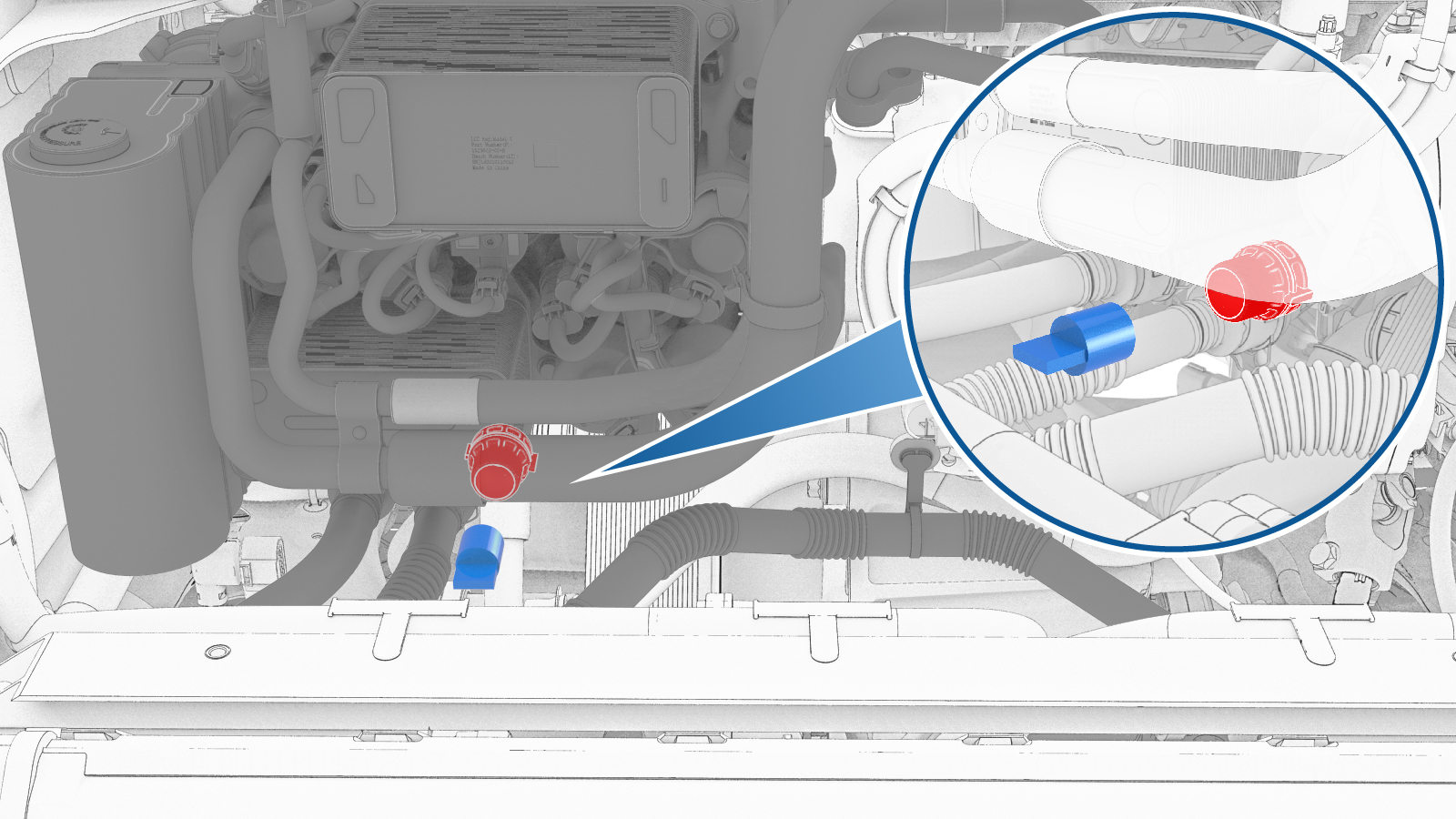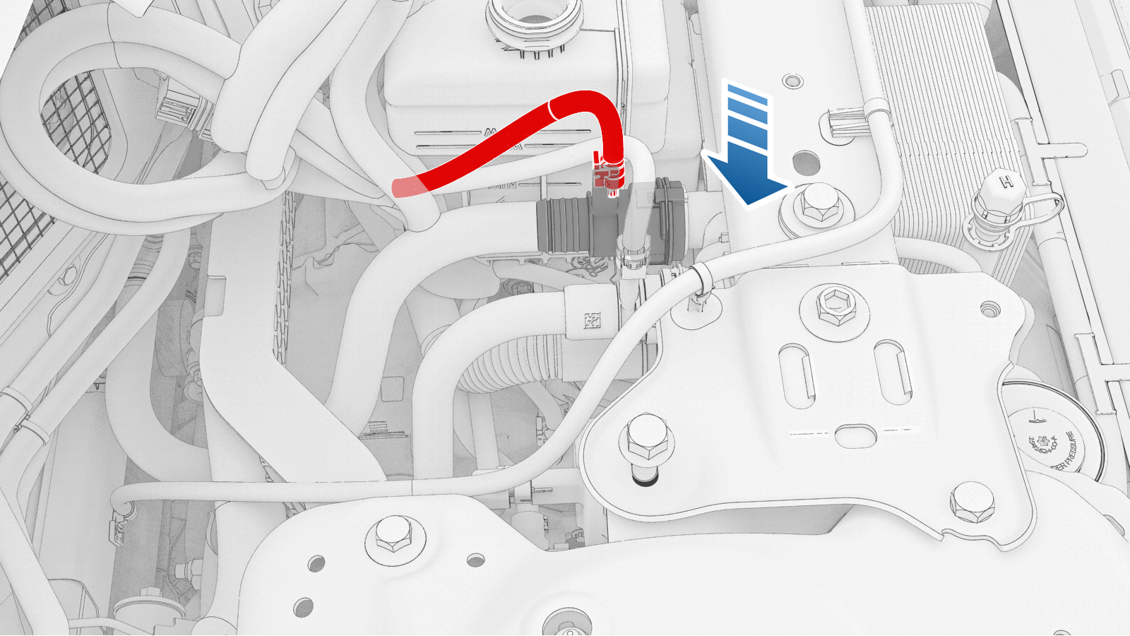 - 松开弹簧夹,将散热器出口软管从超级歧管上断开,然后堵住软管和超级歧管。