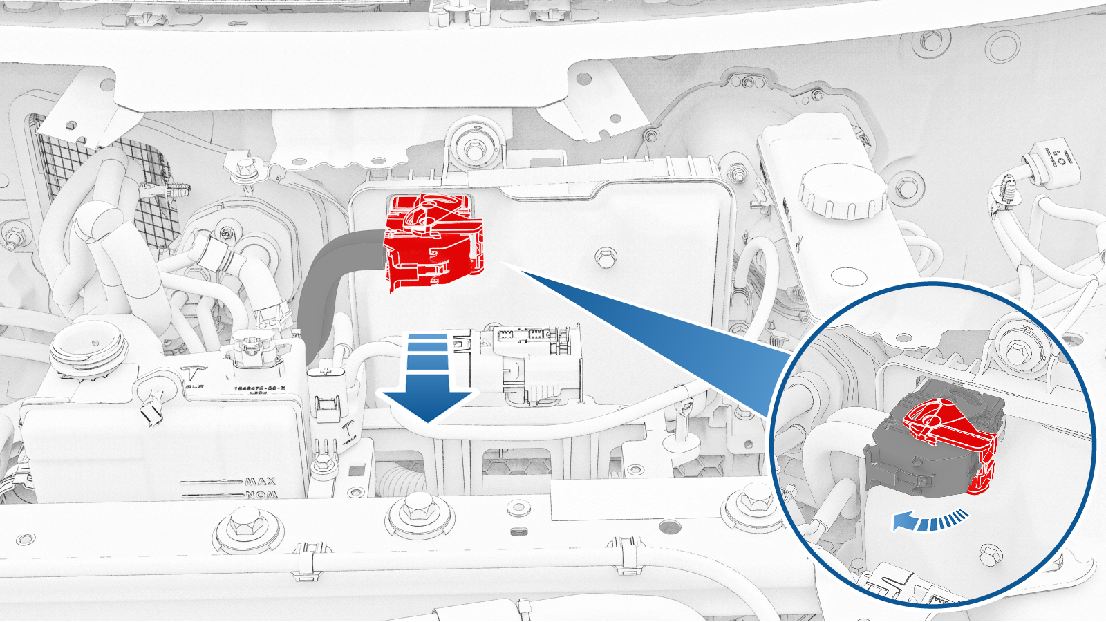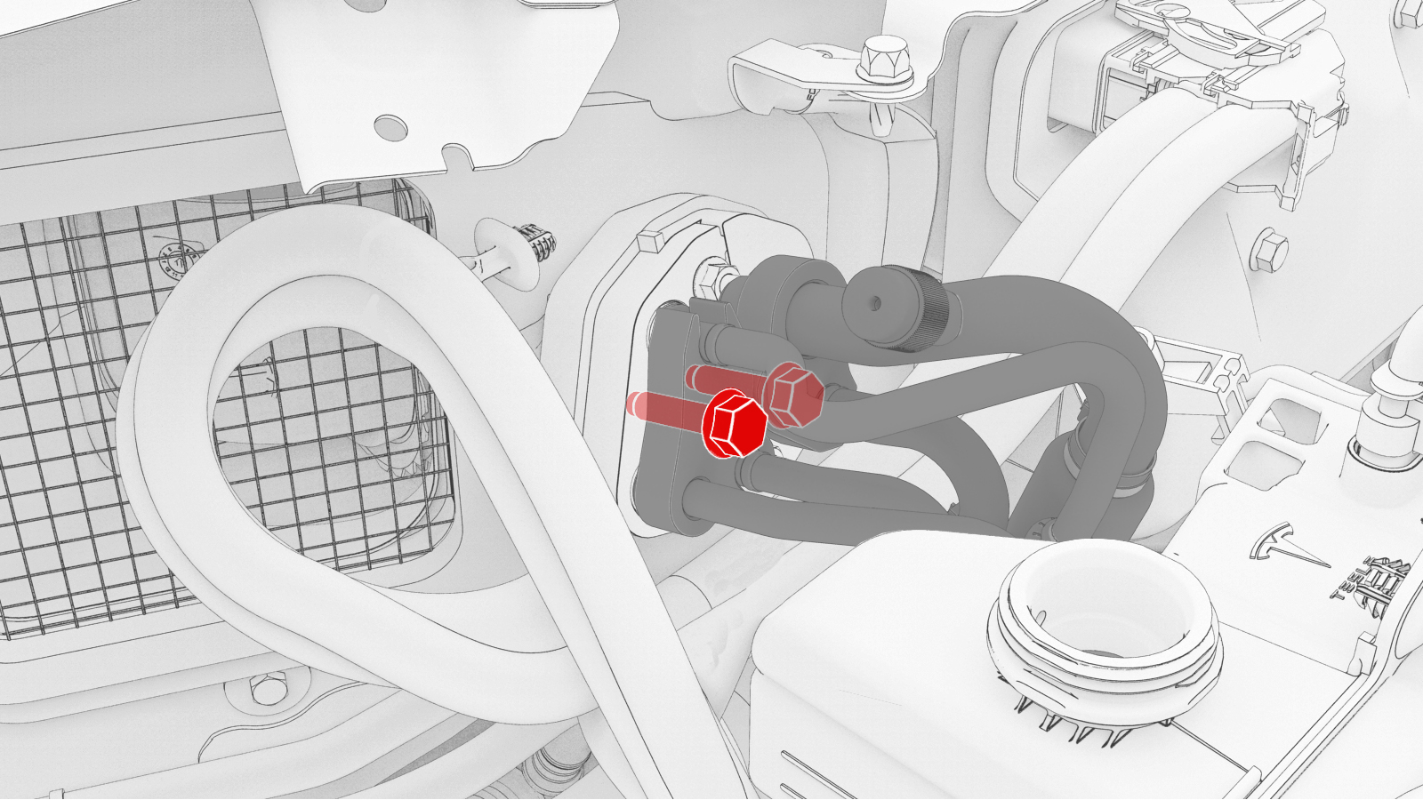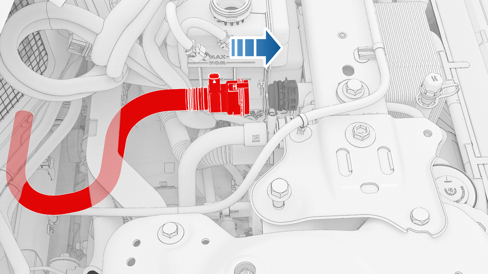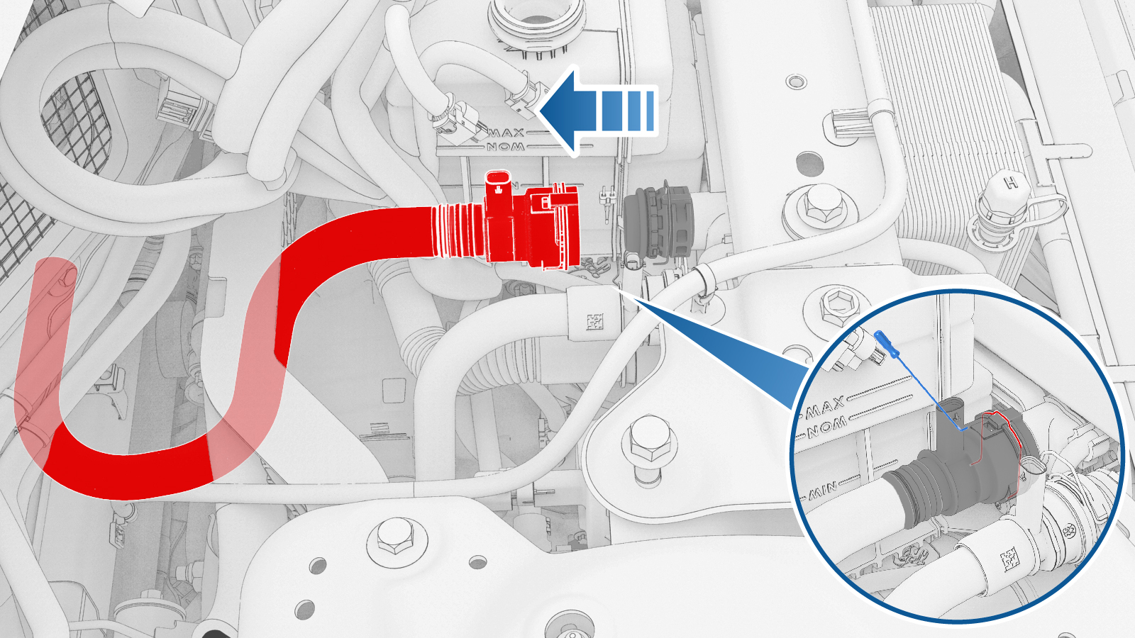- 松开弹簧夹,将散热器出口软管从超级歧管上断开,然后堵住软管和超级歧管。