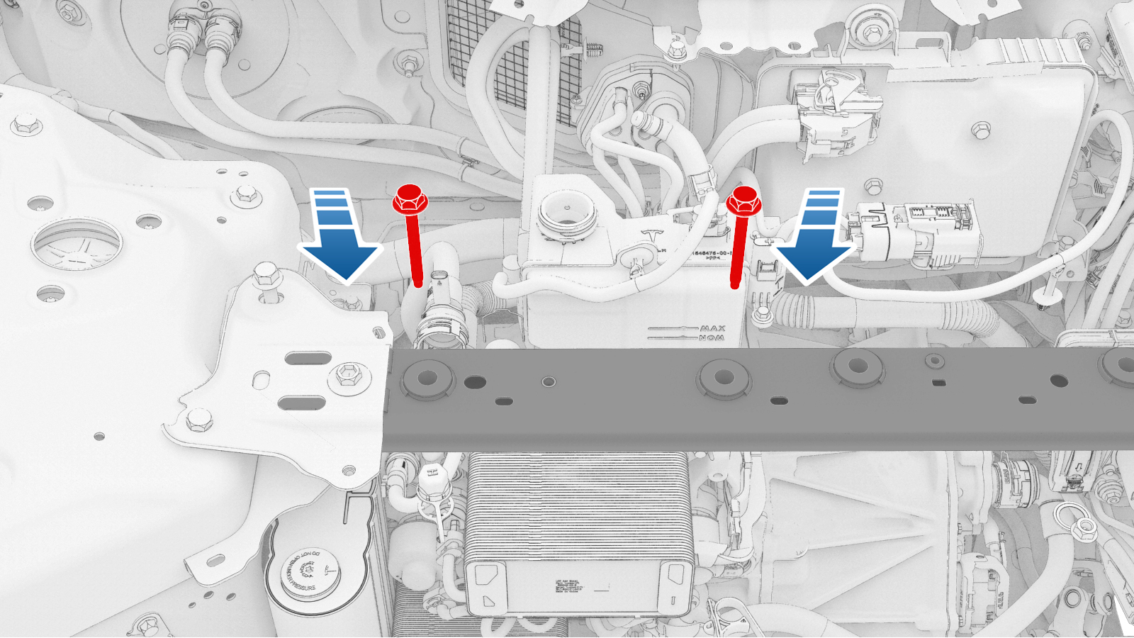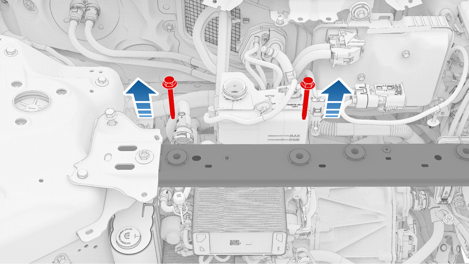 拆卸将超级歧管固定到减震塔横梁的螺栓(2 个)。