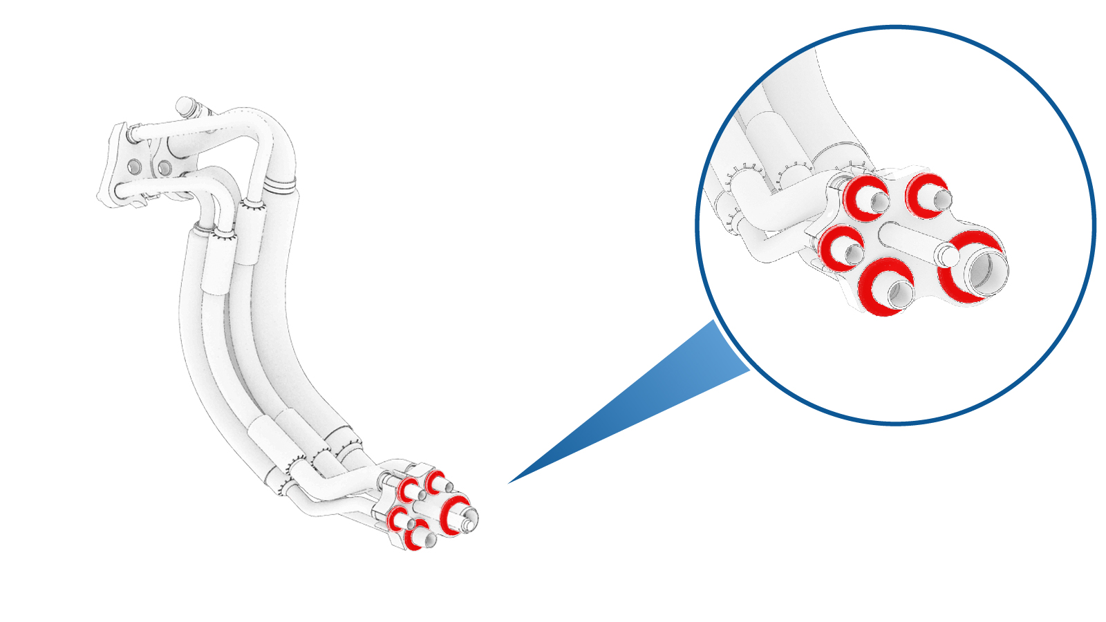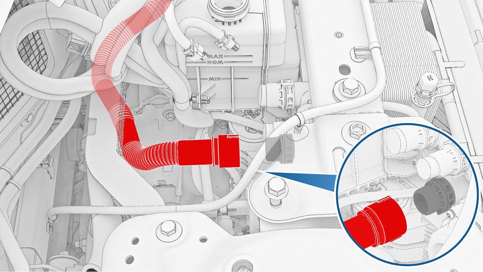 拆卸超级歧管和散热器入口软管上的堵头,迅速将散热器入口软管与超级歧管相连,然后紧固卡子。