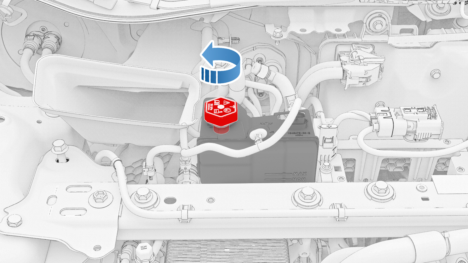 检查冷却液液位,必要时加满,然后安装冷却液罐罐盖。