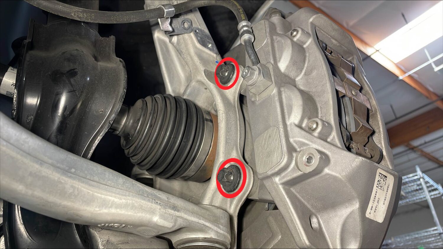 拆下并弃用将右前制动钳固定到右前转向节的螺栓(2 个),并将制动钳悬挂在车身上。