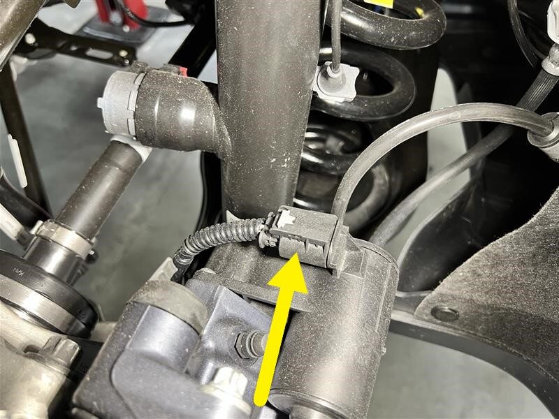 警告为保护挠性制动软管不受损坏,请确保制动软管可以向前弯曲,并且在车辆降下时不会与轮拱内衬接触。 - 连接左后电子驻车制动钳连接器。