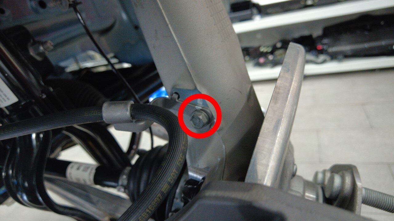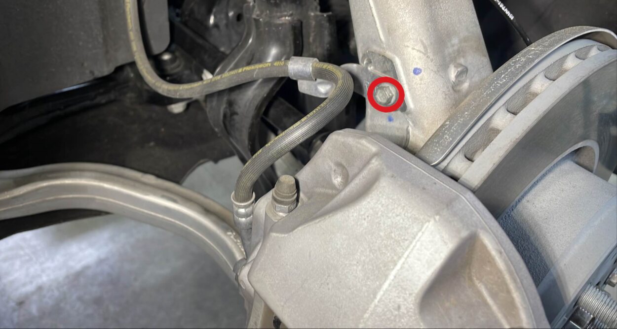 | 将左前/右前制动软管支架固定到转向节的螺栓 | ![]() 5 Nm (3.7 lbs-ft) |