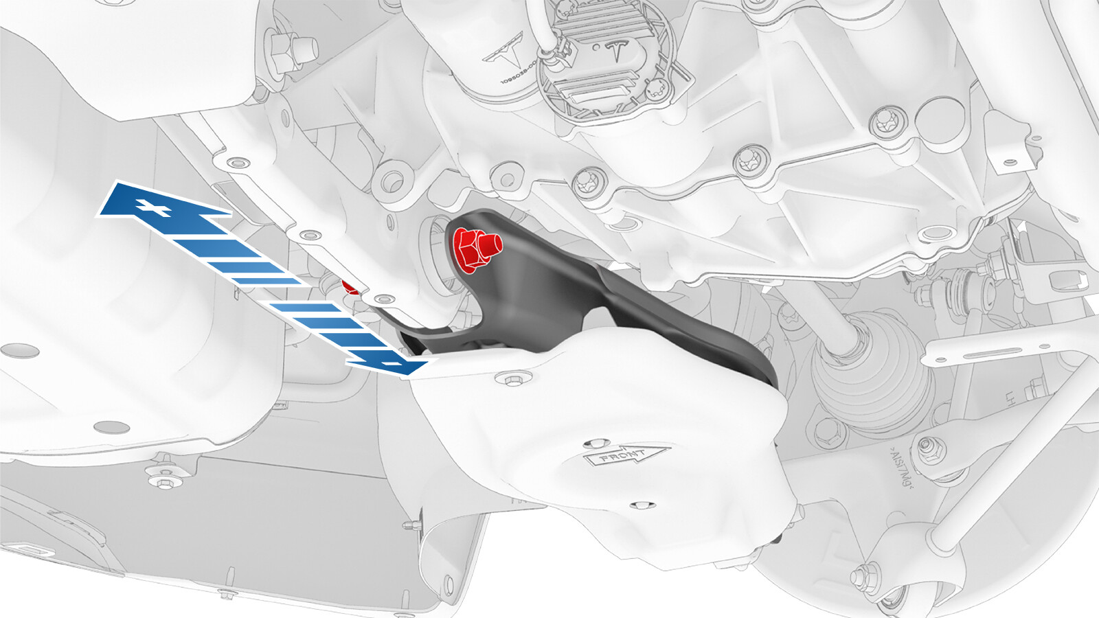 - 稍稍松开但此时请勿拆下左前上方控制臂支座螺栓。