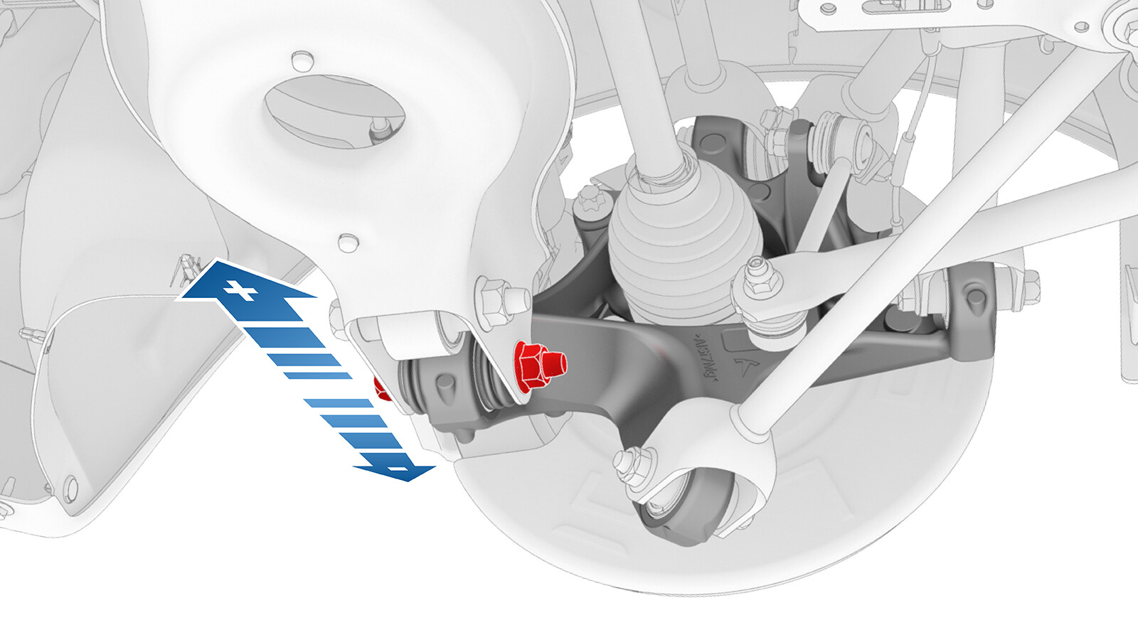 - 将转向节朝靠近中心线的方向移动可增加正外倾角。