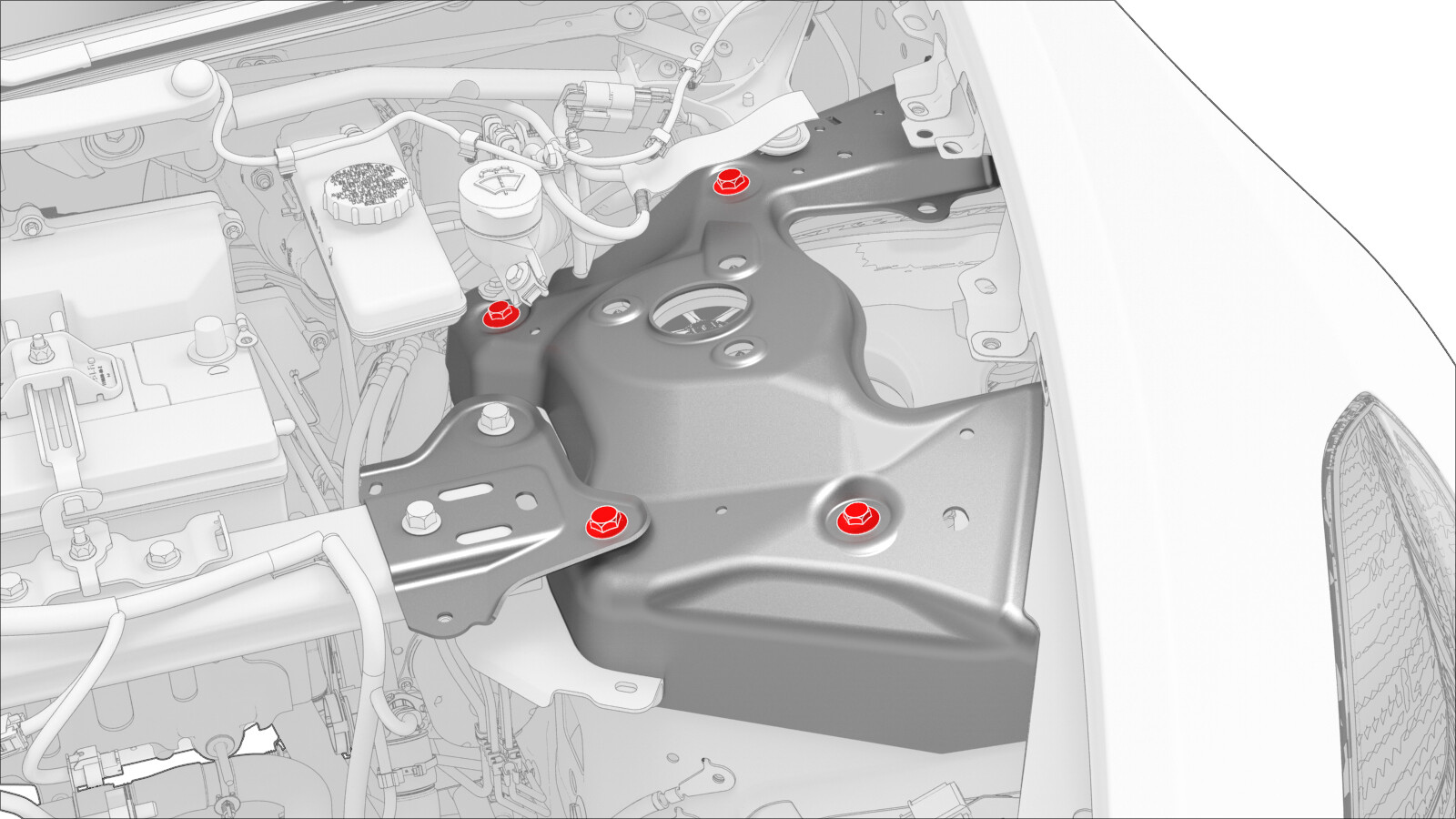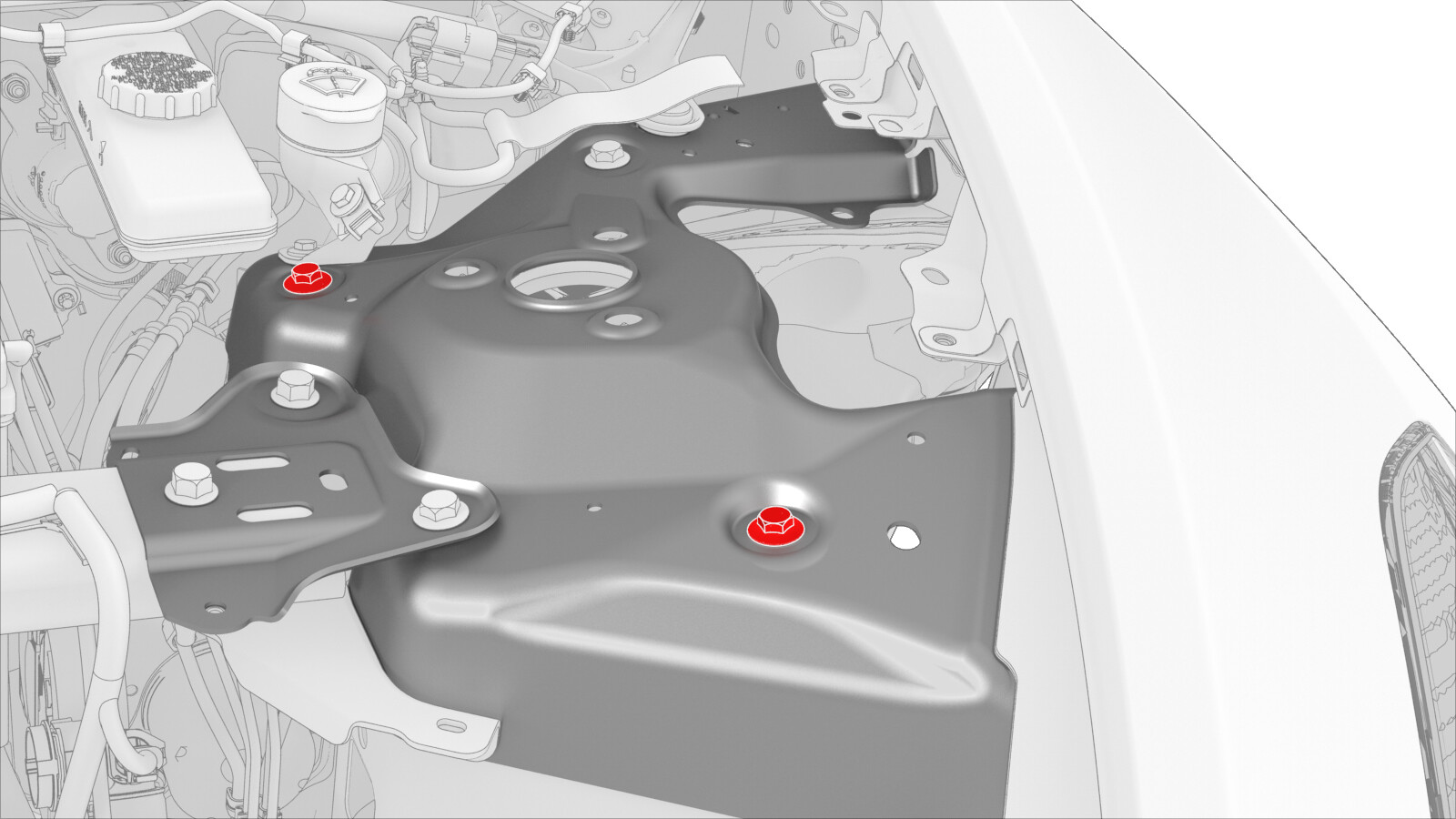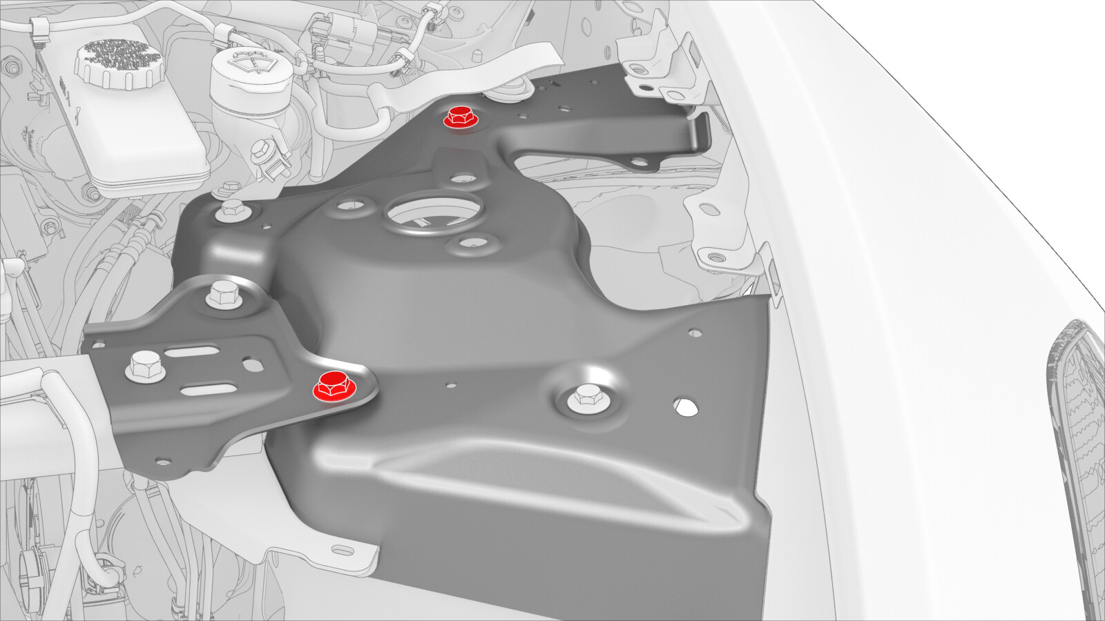 围绕每个左前上方控制臂支座螺栓画圆圈,以标记其位置。