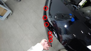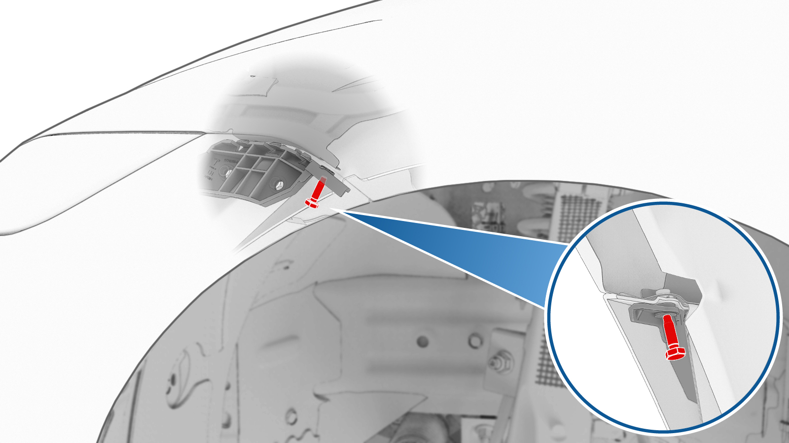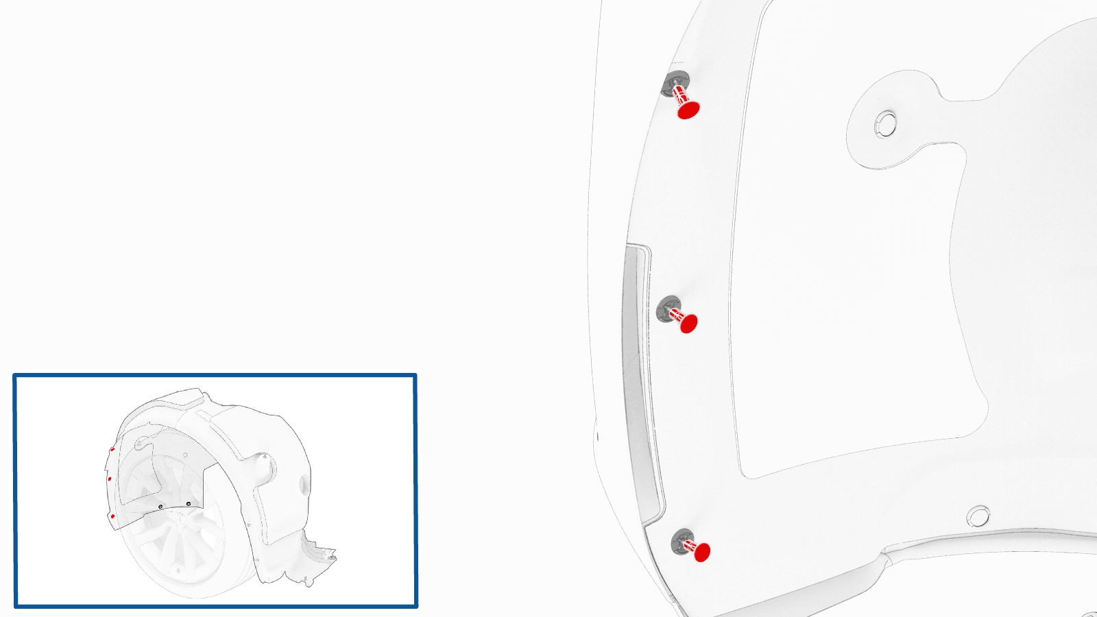 - 安装将左侧前轮拱内衬固定到前饰板上的卡子(3 个)。