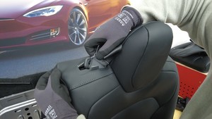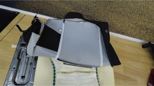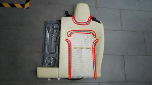 - 将第二排左侧座椅靠背蒙皮罩剩余部分固定至座椅靠背。