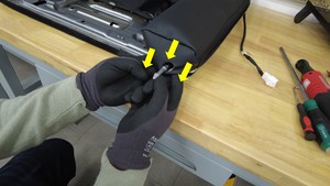 使用对角切割器切开座椅靠背中央的拱环(3 个),然后将饰板罩与拱环分离。