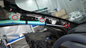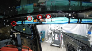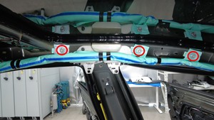 - 安装并手动拧紧将左侧安全气帘固定到车身的螺栓(10 个)。