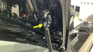 - 拆卸前备箱盖撑杆,关闭前备箱盖并检查其装配情况。