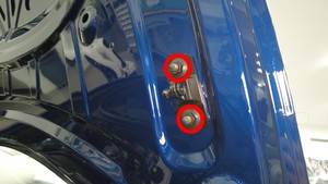 - 预装将前备箱盖撞销固定到前备箱盖的螺栓(2 个)。