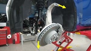 - 移走左前悬架下方的托臂支架。