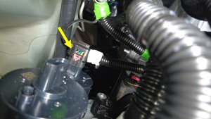 松开连接器锁,然后断开高压电池冷却液泵电气连接器。