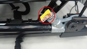 - 从座椅滑轨上拆下第一排外侧安全带预紧器。