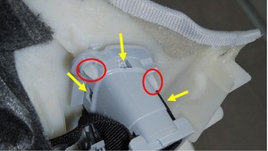 - 安装将边框固定到左后衣帽钩的卡子,然后将衣帽钩安装到顶篷上。