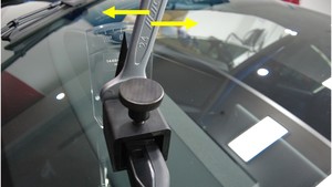 - 从左侧雨刮器臂上拆下雨刮器调整工具。