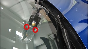 - 拧紧指旋螺钉并确保两个塑料点均靠在挡风玻璃上。