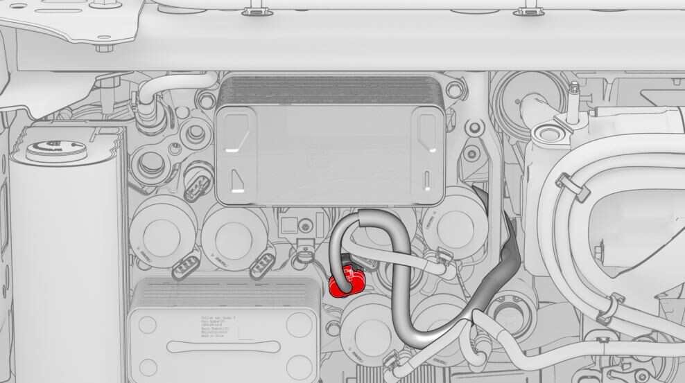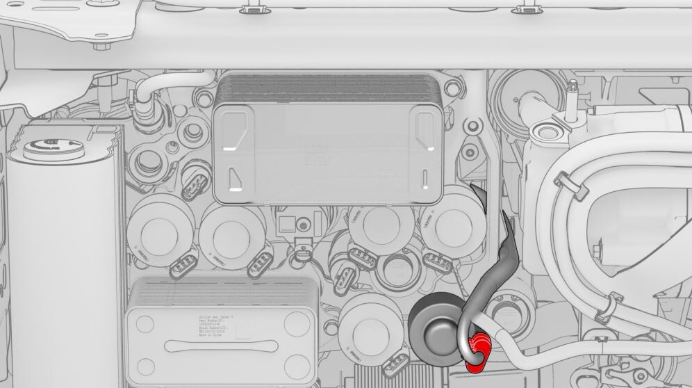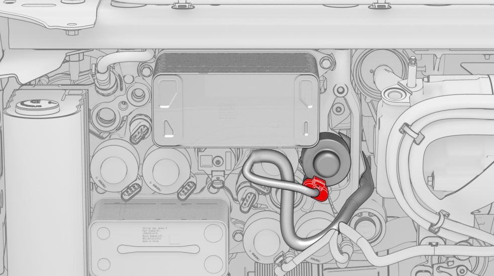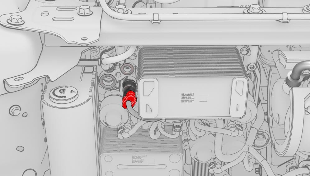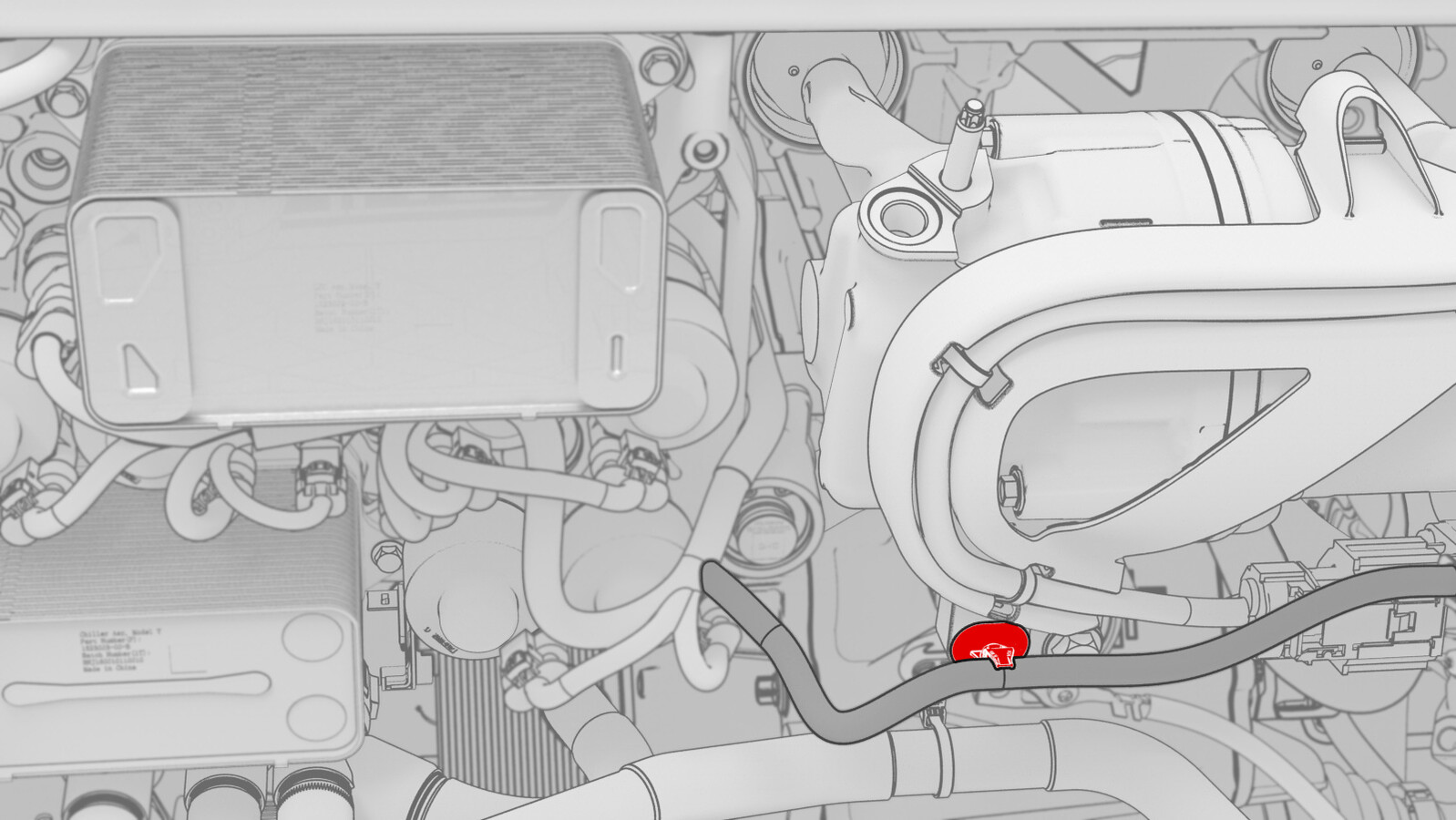从冷却液罐附近冷却器至电池软管上的传感器上断开电气连接器。