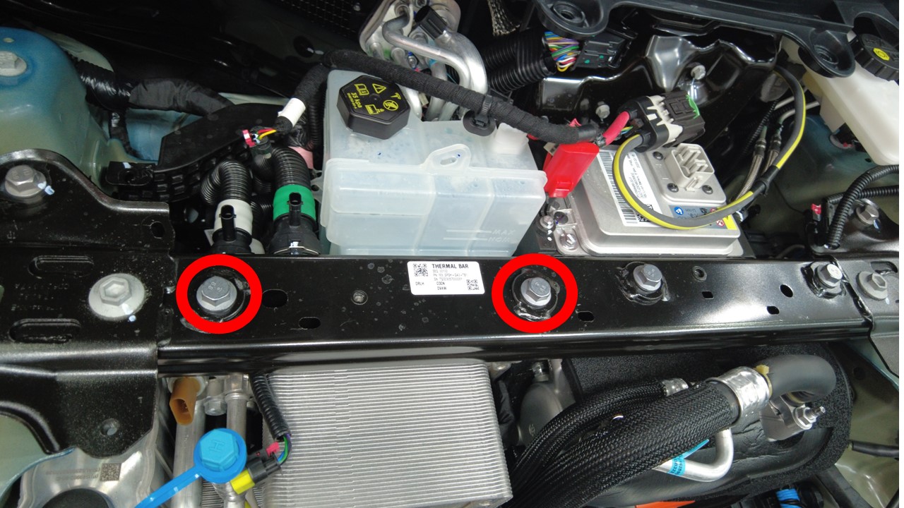松开(但不要拆下)将减震塔支架左侧固定到车辆的内侧螺栓。
