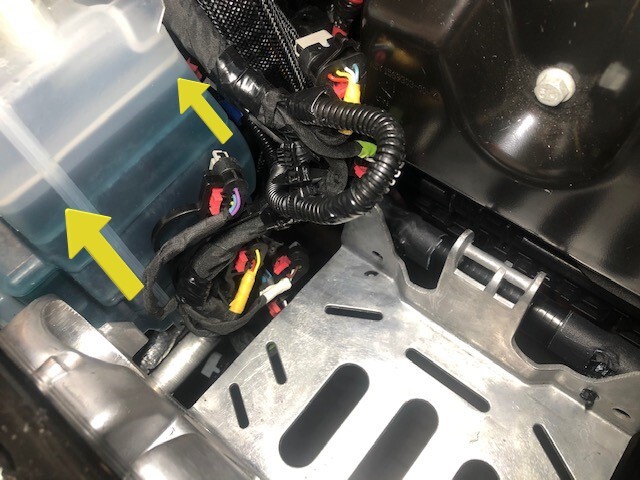 - 松开将电气线束固定到冷却液罐下部左侧的夹子。