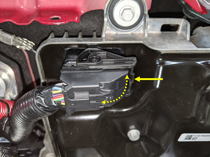 - 松开锁片,然后断开温度系统次总成线束与前部控制器的连接。
