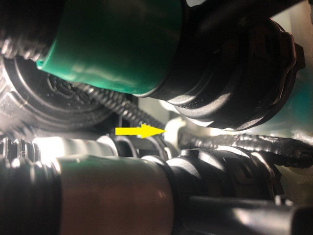 松开锁片,然后断开驾驶室左侧冷凝器膨胀阀上的电气连接器。