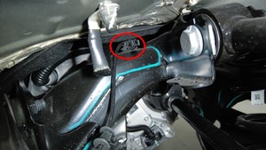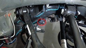 - 松开将左后防抱死制动系统车轮转速传感器线缆固定到副车架的卡子。