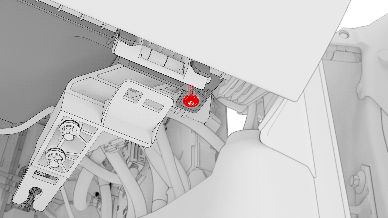 - 松开将副驾位脚部空间风管固定到仪表板的树形头卡子(2 个)。