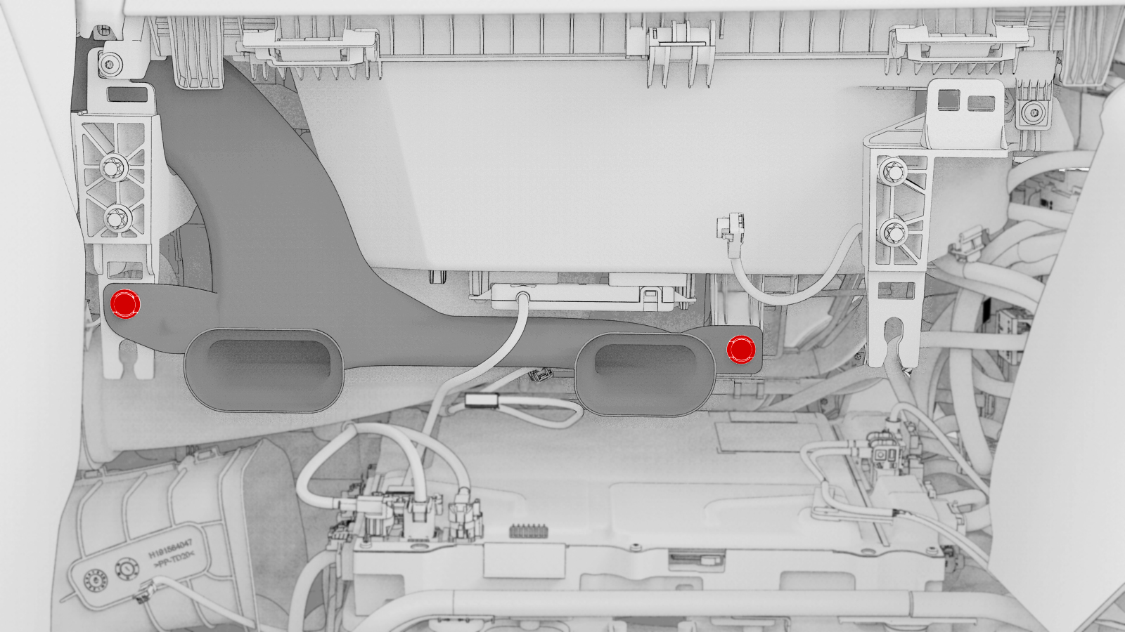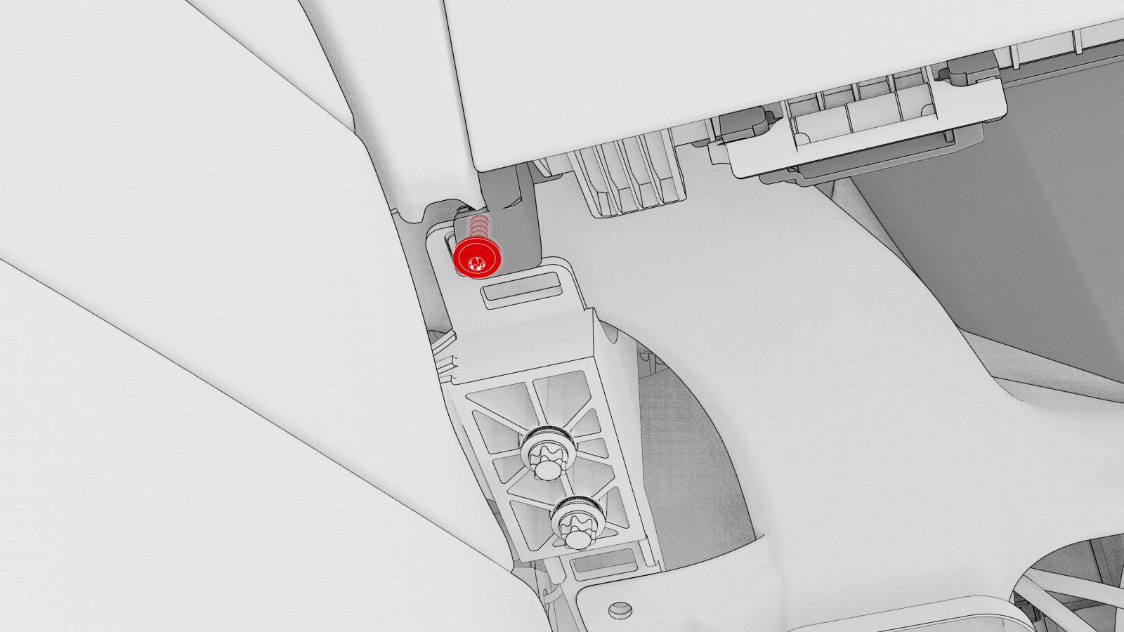 - 紧固将副驾位脚部空间风管固定到仪表板的树形头卡子(2 个)。