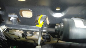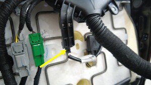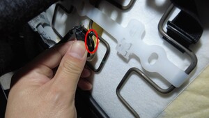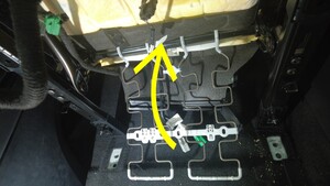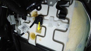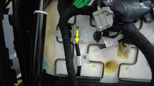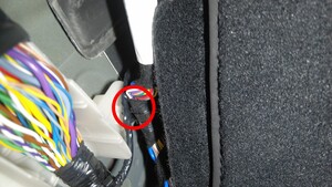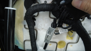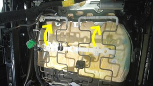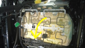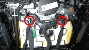 - 安装将线束固定到左前座椅底部的夹子(位于座垫加热器连接器旁)。