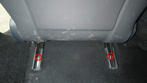 将左前座椅向前移动,然后拆卸并弃置左前座椅后紧固件(2 个)。