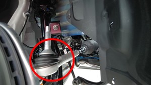 松一松左侧横拉杆球头与转向机构的连接,然后确认左右横拉杆球头是否尽可能均匀地分布。