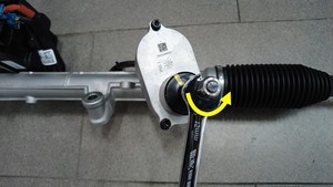 - 逆时针旋转横拉杆,将左右外侧横拉杆球头从新的转向机构总成上拆下。