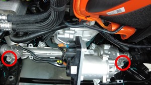 拆卸将转向机总成固定到前副车架的外侧螺栓(2 个)。