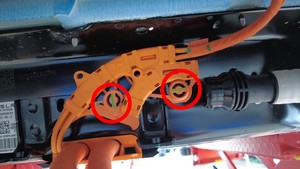 - 紧固将高压电池右侧内部回路软管固定到高压电池的卡子。