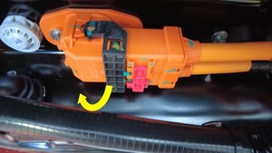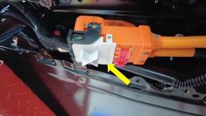 - 从高压电池前驱动单元连接器上拆下高压连接器专用工具。