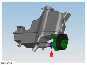 - Remove the coolant reservoir (perform steps 1-12 of the Coolant reservoir remove and install procedure).