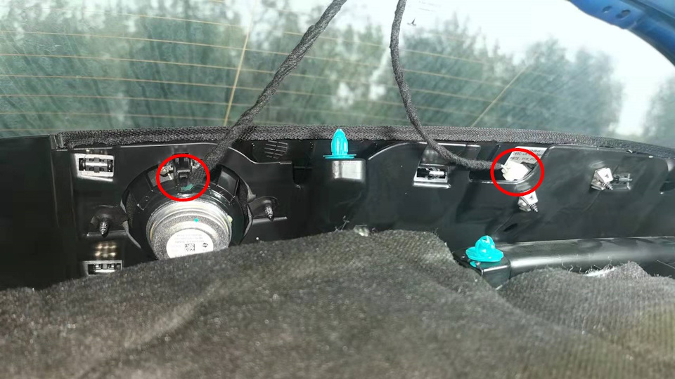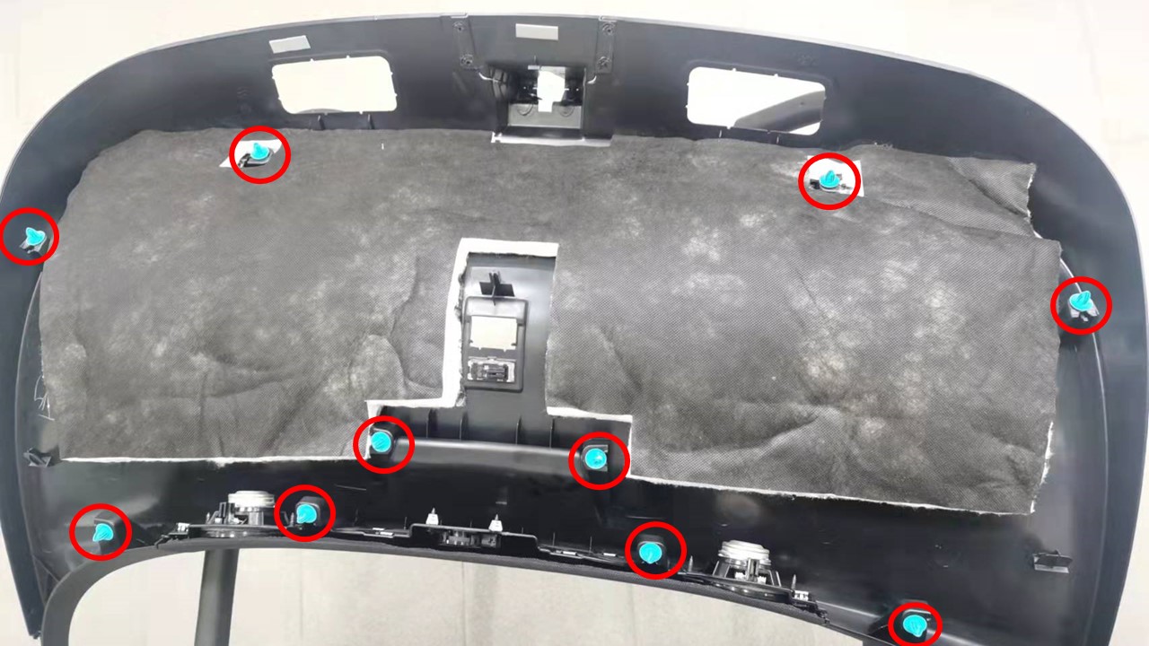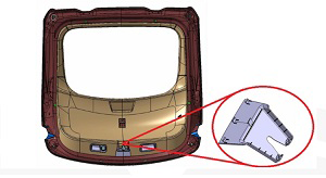 - Use a piece of felt tape to attach the clips to the liftgate lower finisher. Do not use grease or glue to secure the clips.