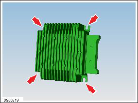 - Install the amplifier onto the amplifier/tuner bracket, and then install the screws (x4) that attach the amplifier to the bracket (torque 4 Nm).