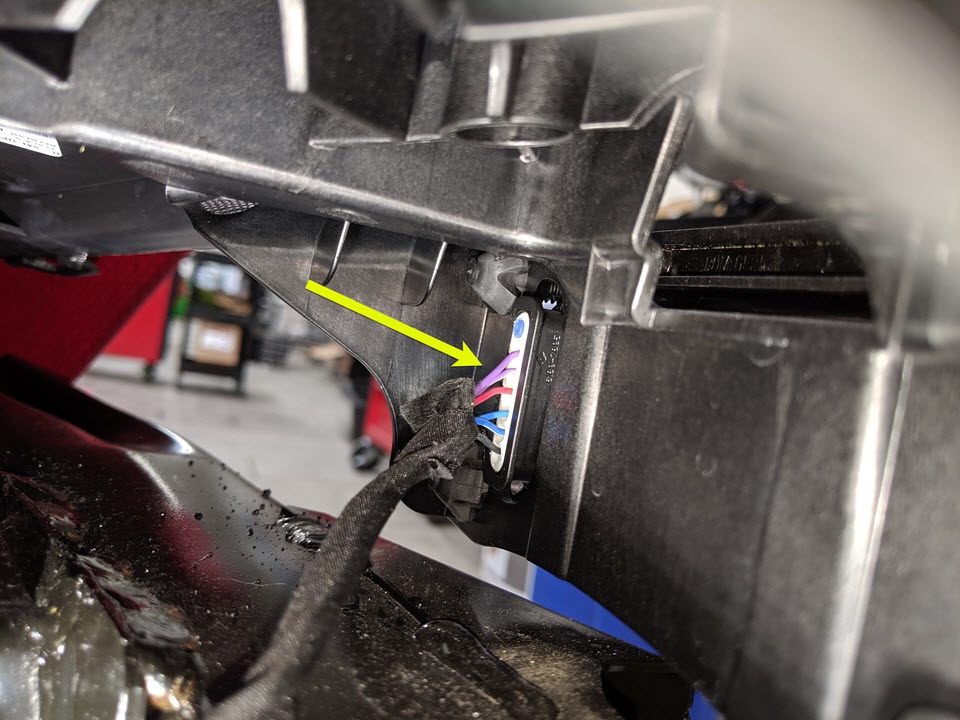 - Disconnect the front radar electrical connector using a small flat head screwdriver.