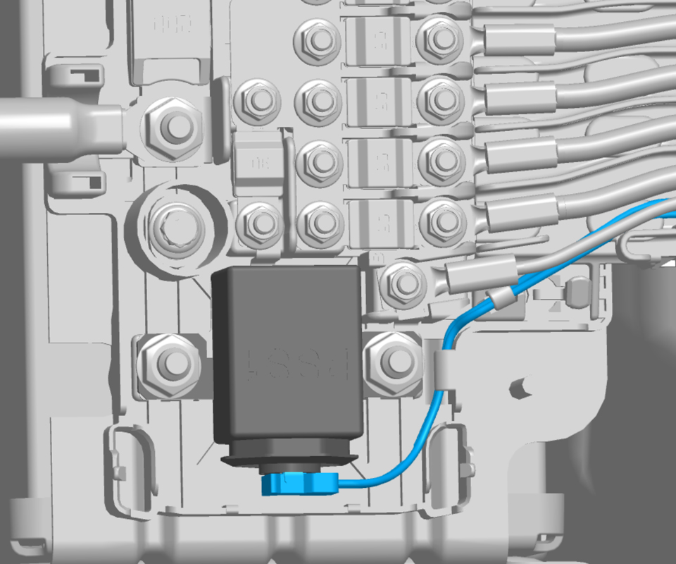 - Remove the nuts (x2) that secure the pyrotechnic battery disconnect (torque 15 Nm).