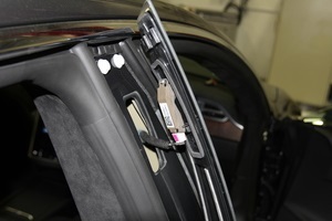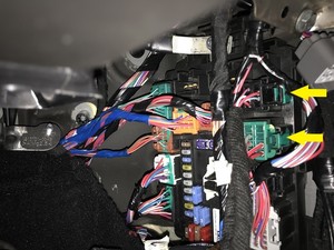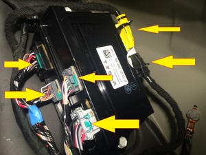 - Disconnect park assist, parking brake, and liftgate module connectors
