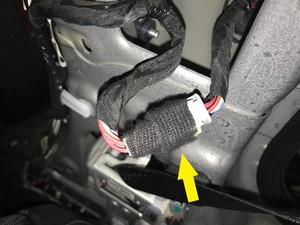 - Disconnect the RH seat belt reel connector and put the harness aside.