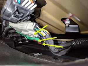 - Disconnect the subframe harnesses connectors (x3), and then release the harness clip.