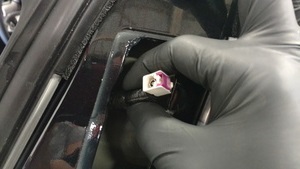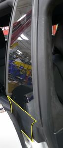 - Release the RH B-pillar seals from the applique and body along the length of the applique.
