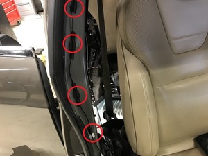 - Remove RH 2nd row sear bolster. See Bolster - Side - Seat - 2nd Row - LH (Remove and Replace).